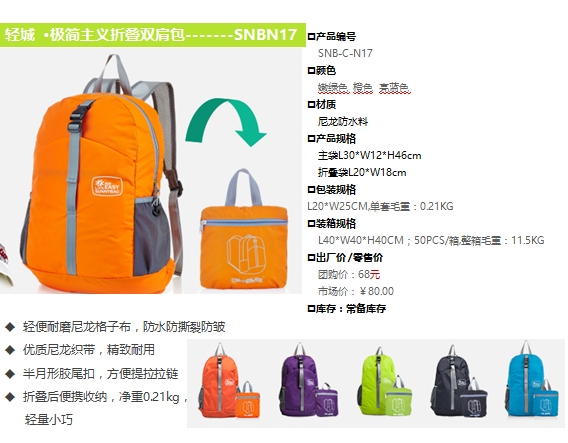 輕城 ·SNBN17極簡主義折疊雙肩包